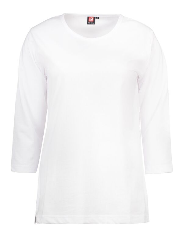 Min. antal: 25Ekstra slidstærk T-shirt med 3/4-ærmer, rund hals og slids i siden.