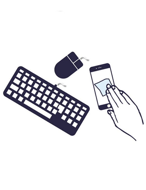 En desinfektions serviet til din mobiltelefon, tastatur, computermus og anden elektronik. Servietten fjerner effektivt bakterier og virus og forhindrer dermed smittespredning.