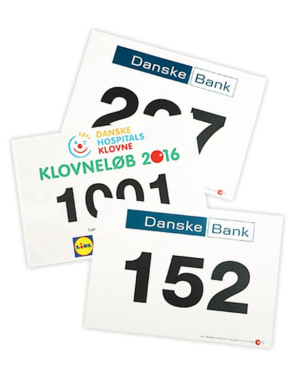 Løbsnumre kan fåes med sort eller farvet påtryk.