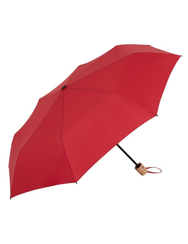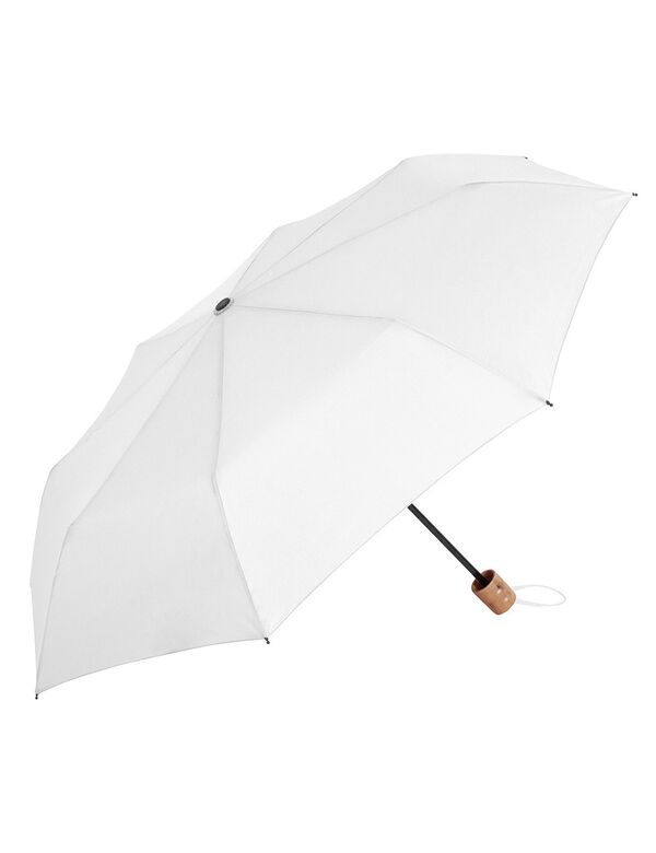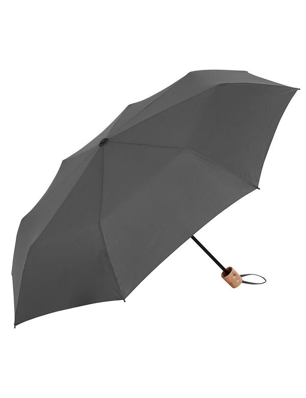 Min. antal: 25Taskeparaply i recycled materiale med manuel åbning og håndtag i træ.