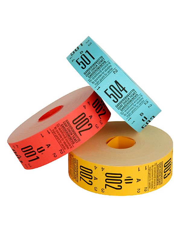 Til brug i garderobe, hvor det ene nummer påsættes bøjlen og det andet afleveres til kunden.