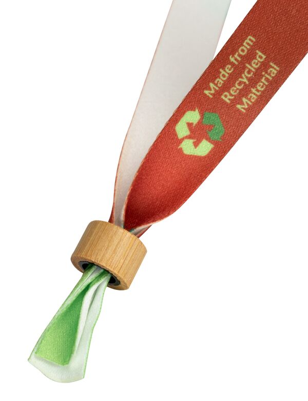 Låsen er produceret af 50 % genbruges plastik og 50 % bambus. Den inderste del af låsen er lavet af plastik, som har små modhager, som sikrer at armbåndet ikke kan tages af igen, når først gæsten har fået det. Den ydre del i bambus er med til at understrege det bæredygtige valg.