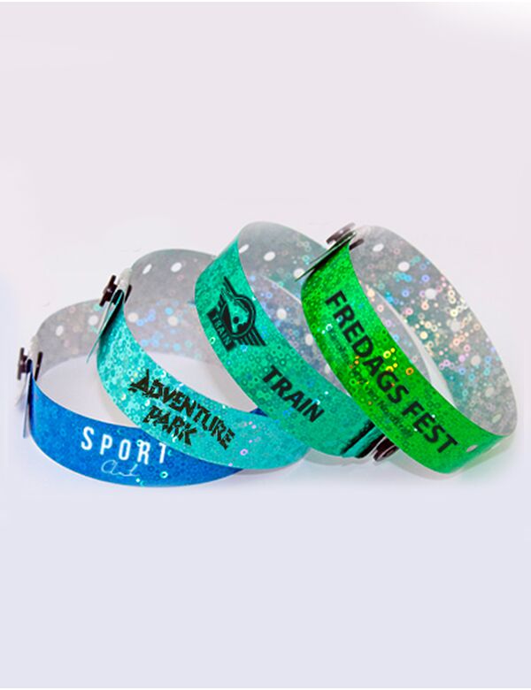 Metallic bånd med forskellige glitrende mønstre. Velegnet til VIP gæster og diskoteker.