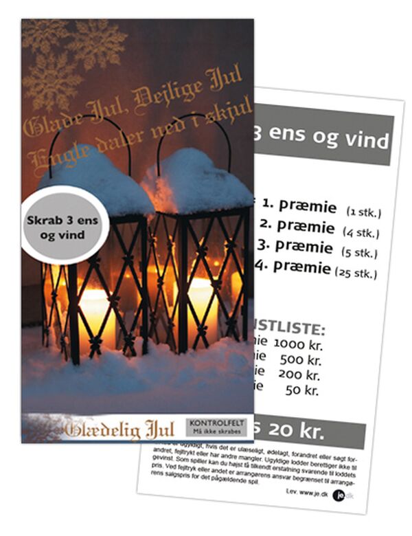 Min. antal: 1Glade Jul (standard juleskrab) er et sjovt, fortrykt julespil, som kan sælges i lukkede forsamlinger op til jul og i hele december måned.