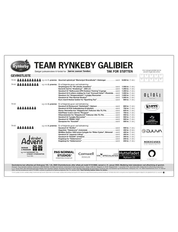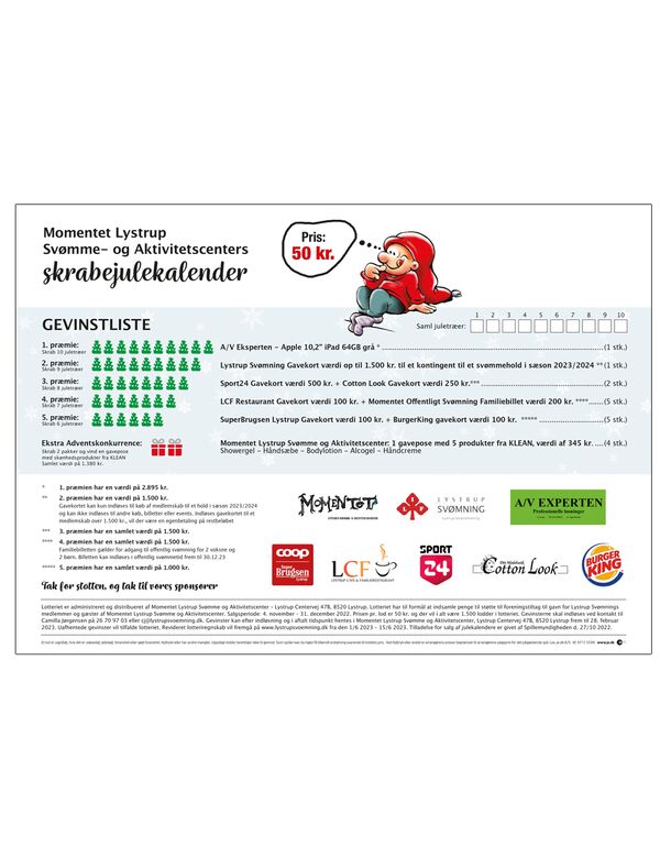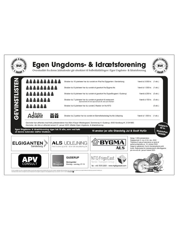 1 gevinstgruppe (1. præmie) ved adventsskrabet.