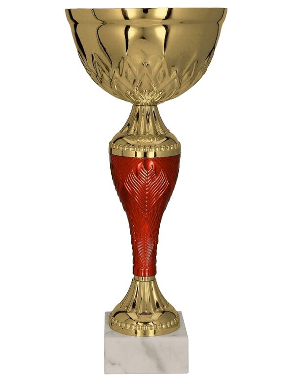 Min. antal: 1Flot guldpokal med røde detaljer.