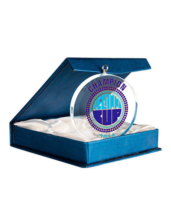 Neutralmedalje i glas. Prisen er inkl. fuldfarvet tryk med eget design.