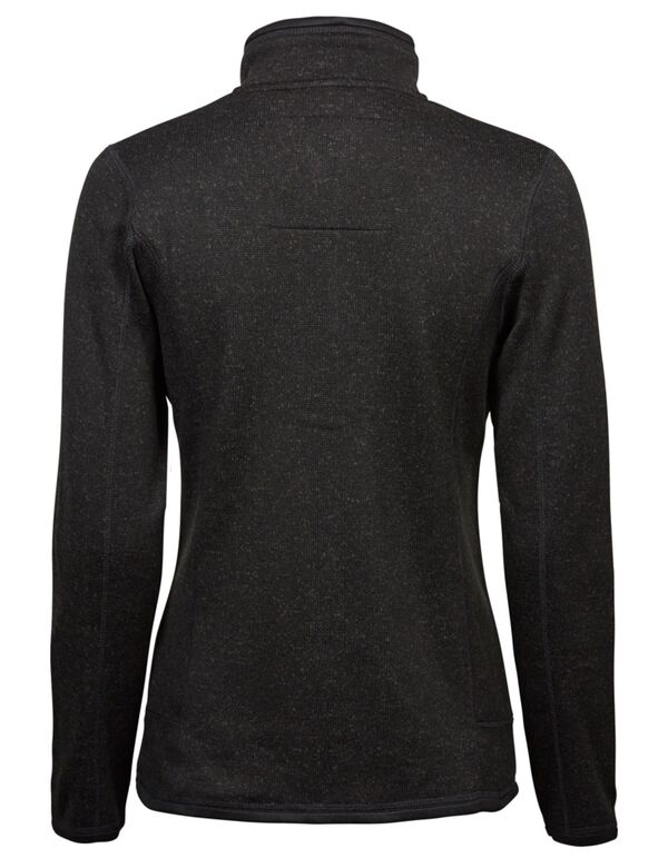 Den er fremstillet af melange strik med single jersey tricot på krave og manchetter, som giver et cool og autentisk look.
