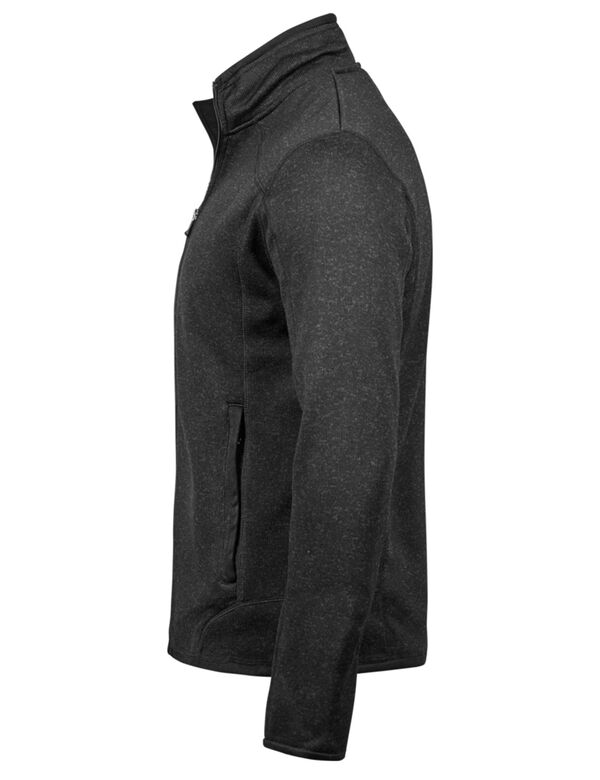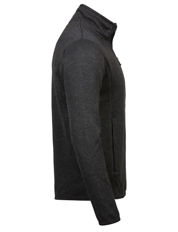 Den er fremstillet af melange strik med single jersey tricot på krave og manchetter, som giver et cool og autentisk look.
