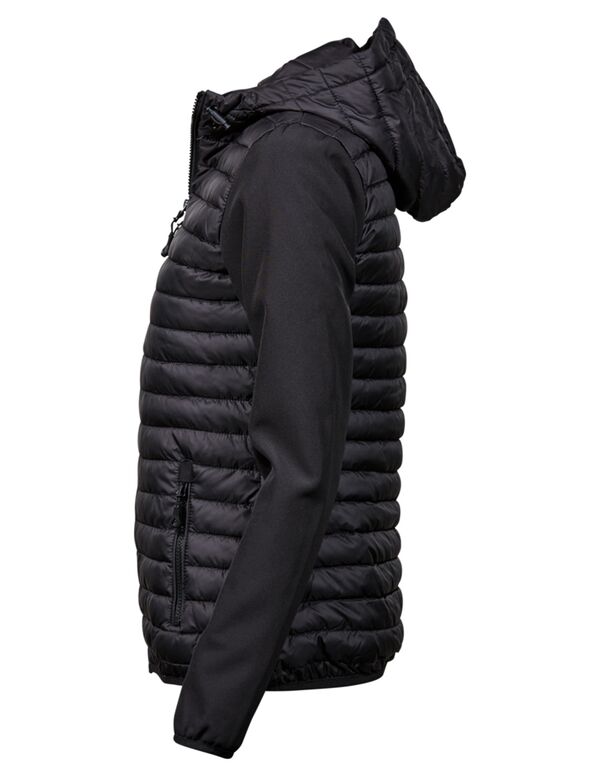 For at give den et sporty look har vi brugt en kombination af en let polyester 300T med polyester padding og softshell.