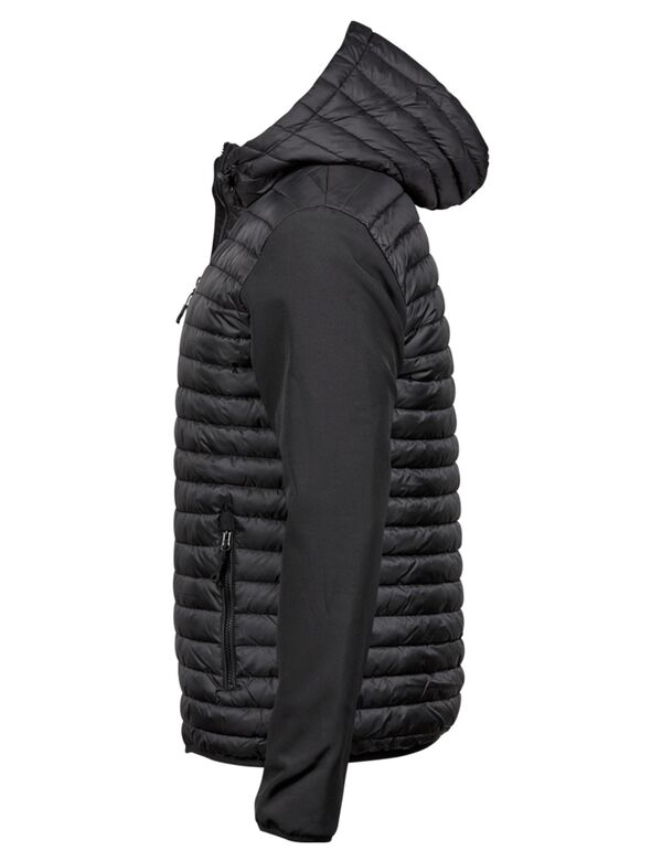 For at give den et sporty look har vi brugt en kombination af en let polyester 300T med polyester padding og softshell.
