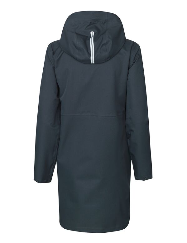 Jakken har lynlås, som lukkes med skjulte trykknapper for maksimal vandtæthed. Hætten har indvendig regulering samt let skygge fortil.
