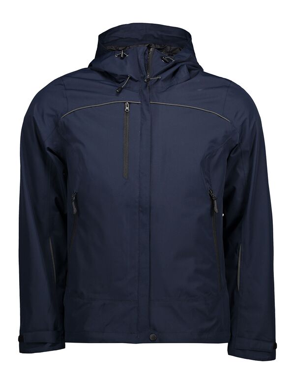 Ekstra længde bagtil og justerbar elastiksnøre nederst på jakken, der hindrer træk. Tapede sømme.