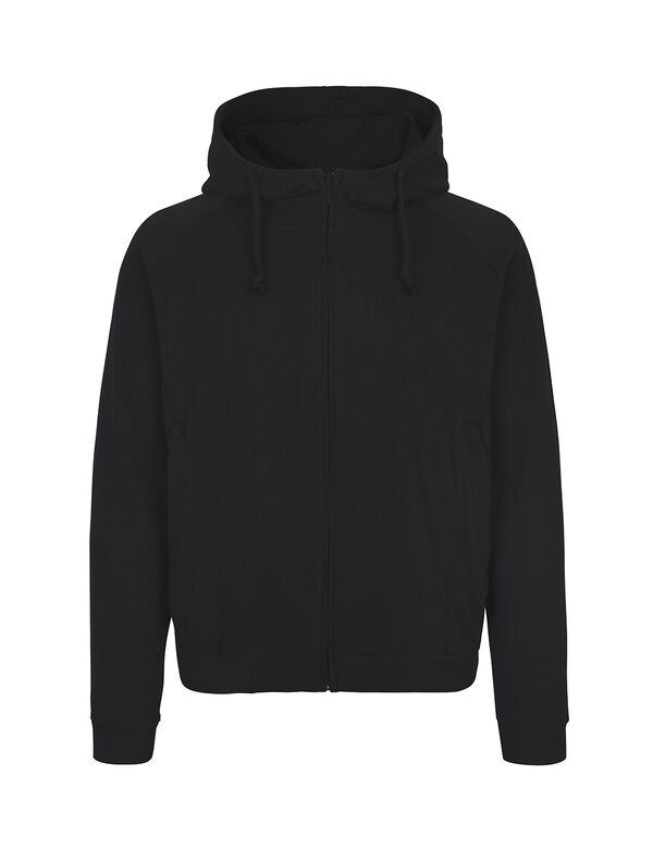 Neutral hoodie i høj kvalitet med skjult lynlås og børstet fleece på indersiden.