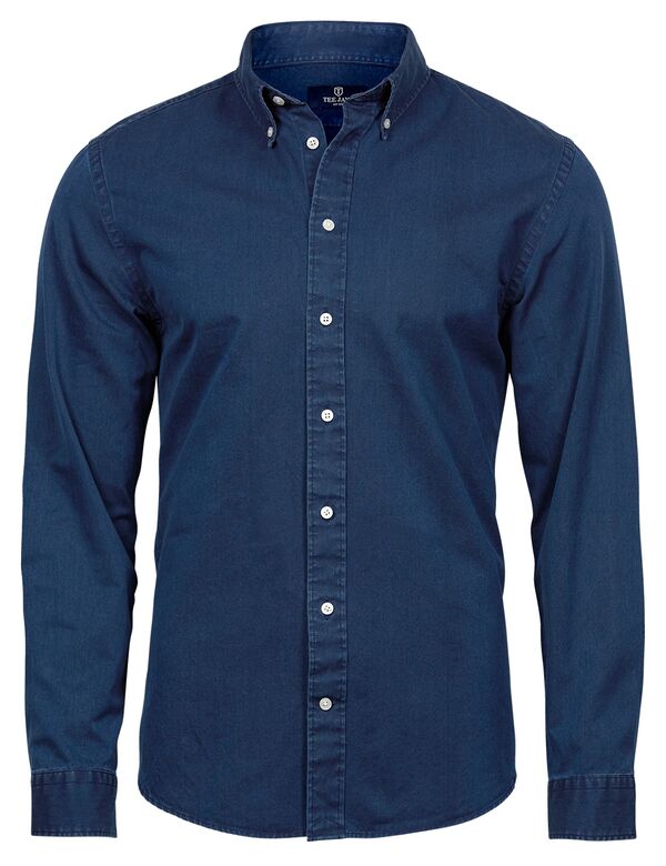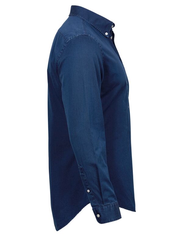 Denne garment washed indigo twill-skjorte har en behagelig, faconsyet pasform og lækre detaljer.