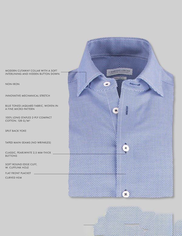 Skjorten er lavet i dobbelt 100 jacquard kvalitet med moderne mønster. Kombiner den med jakkesættet eller mere afslappet med et par jeans.