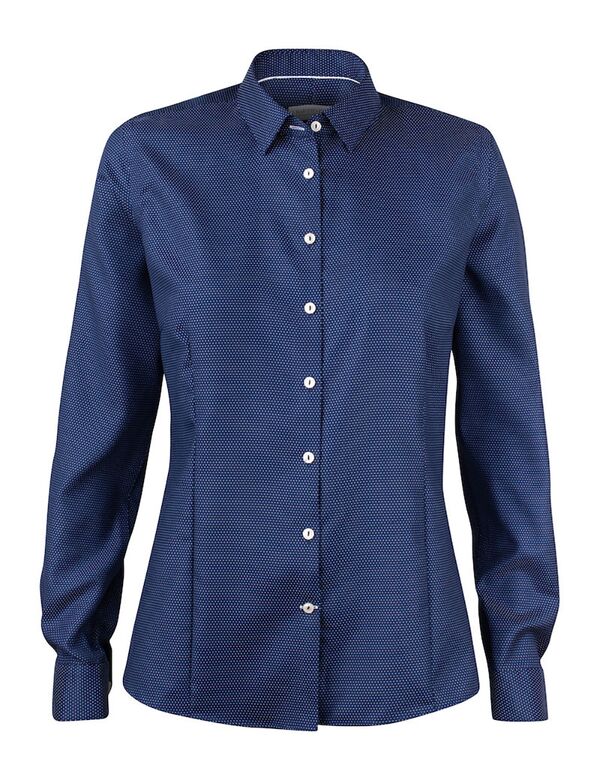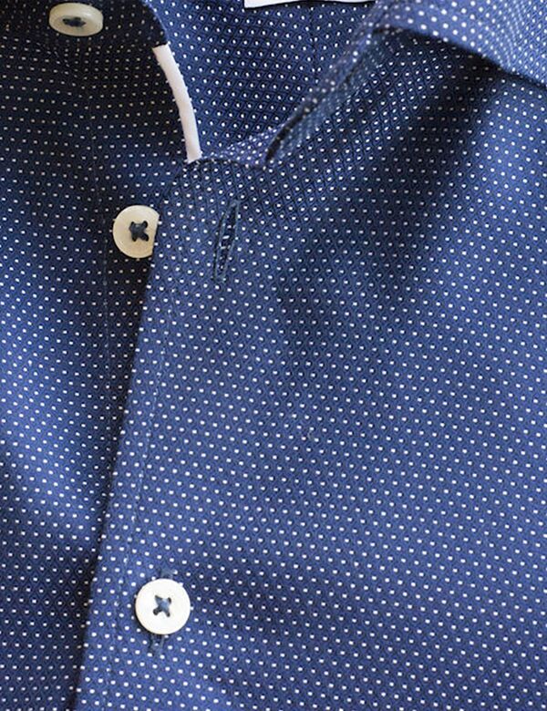 Skjorten er lavet i dobbelt 100 jacquard kvalitet, med fint mikro mønster med hvide prikker. Kombiner den med jakkesættet eller mere afslappet med et par jeans.