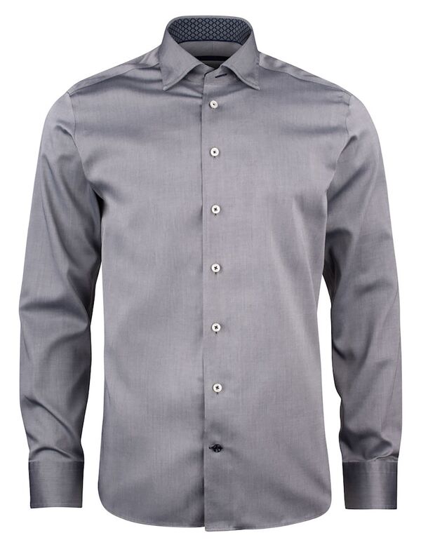 Skjorten er lavet i 2-lags kompakt langstablet bomuld, som giver det bedst mulige resultat. 2-delt bærestykke sikrer blødt kurvet udseende over skuldre og giver en større bevægelsesfrihed. Tapede sømme hjælper skjorten til at stå skarp vask efter vask uden folder. Button down krave med skjulte knapper. 4 mm knapper giver en god følelse og et moderne udseende.