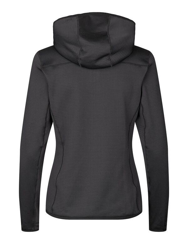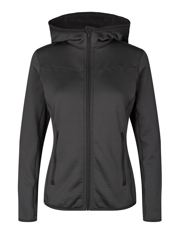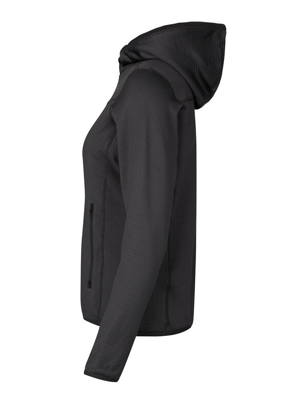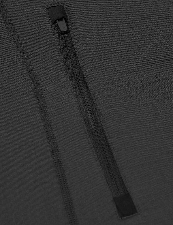 YKK lynlås i front og sidelommer, samt hul til tommelfinger i ærmerne. Bund og ærmer er kantet med elastikbånd. Kan også bruges som et isolerende lag under jakken. Pasform er tætsiddende.