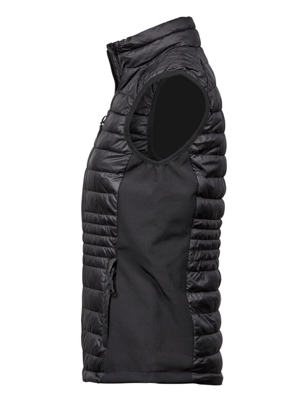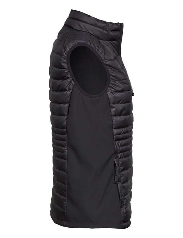 Til denne moderigtige bodywarmer er der brugt en kombination af en let polyester 300T med polyester padding og softshell, som giver et sporty, urbant look.