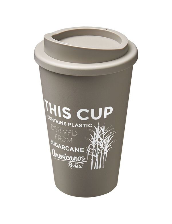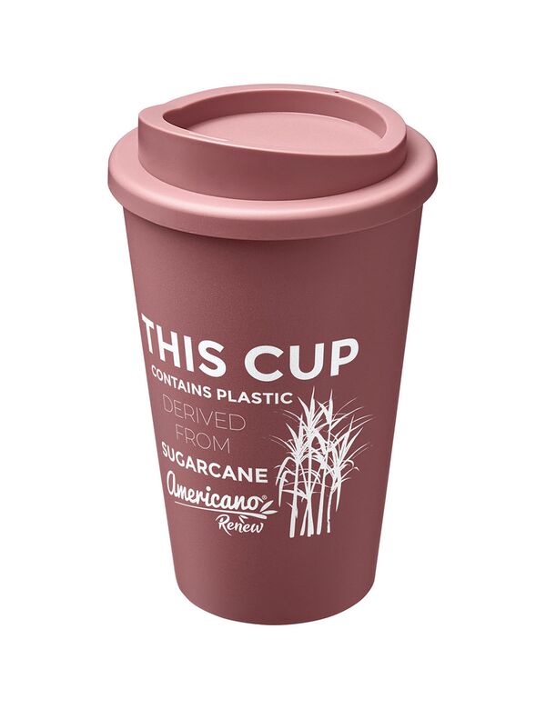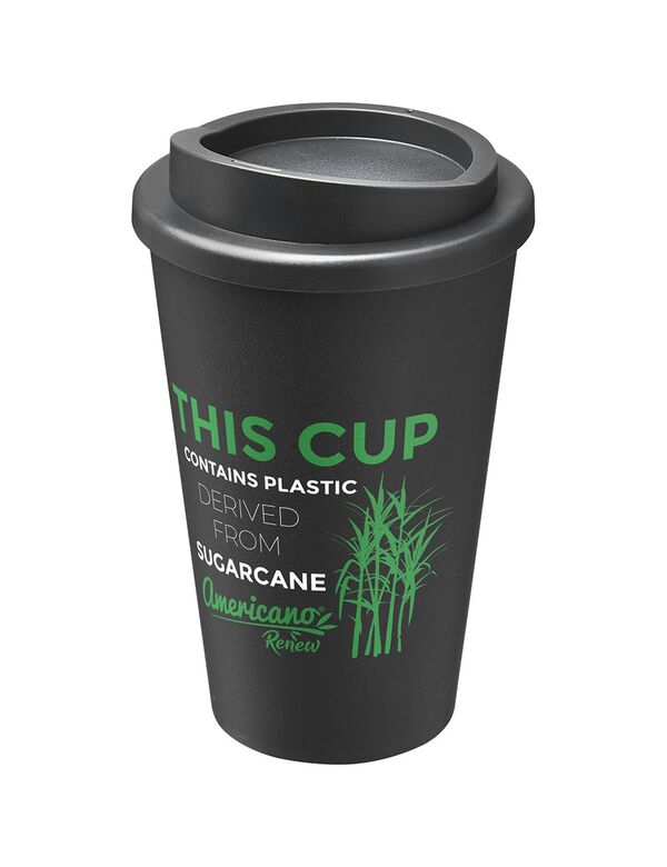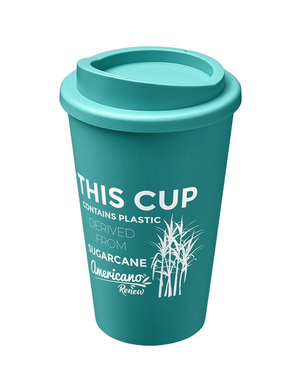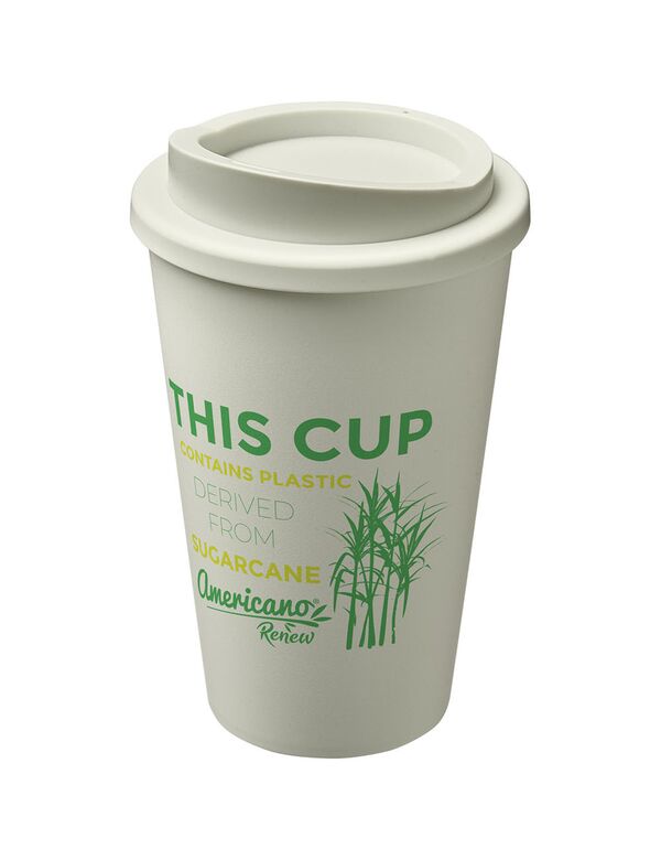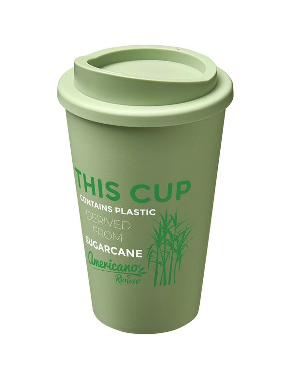 Indeholder 25 % plast fremstillet af sukkerrør. Denne vedvarende kilde absorberer kuldioxid, mens den vokser, og er et biprodukt af sukkerindustrien. Brugen af sukkerrør betyder, at der anvendes mindre olie til fremstilling af hvert krus.