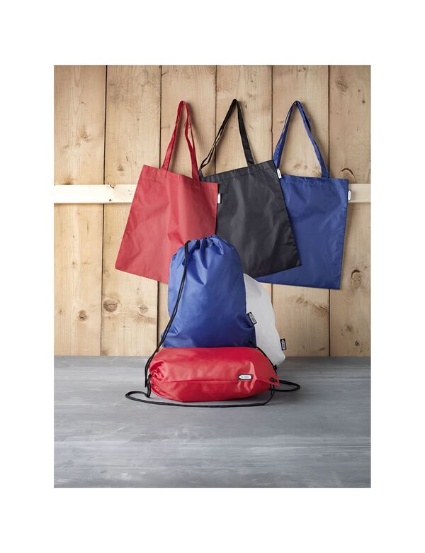 Min. antal: 100Robust taske fremstillet af 100 % genanvendt, genvundet plast, som bidrager til reduktion af plastaffald.