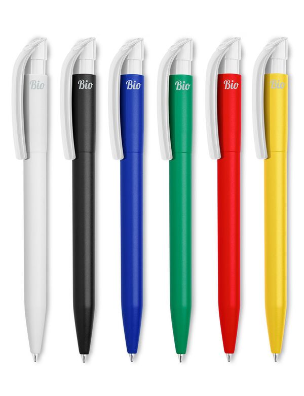 Min. antal: 500BIO kuglepen med farvet krop og hvid clips