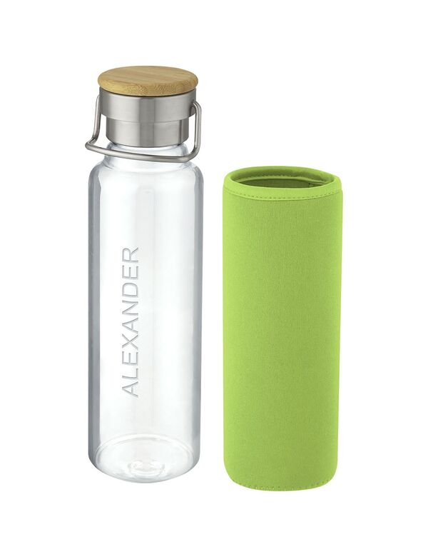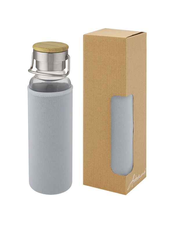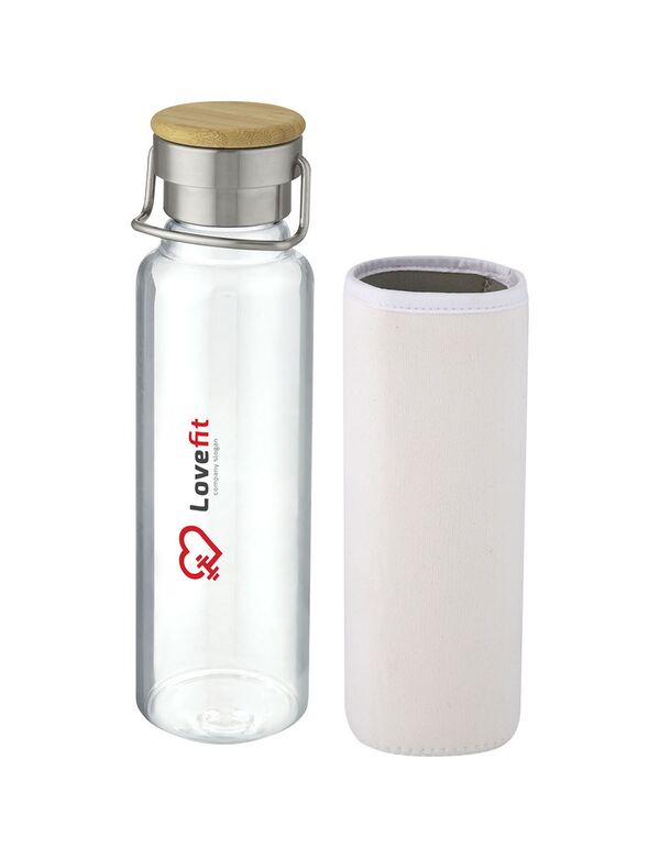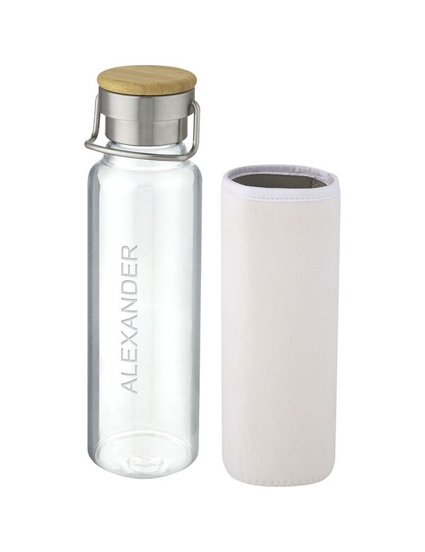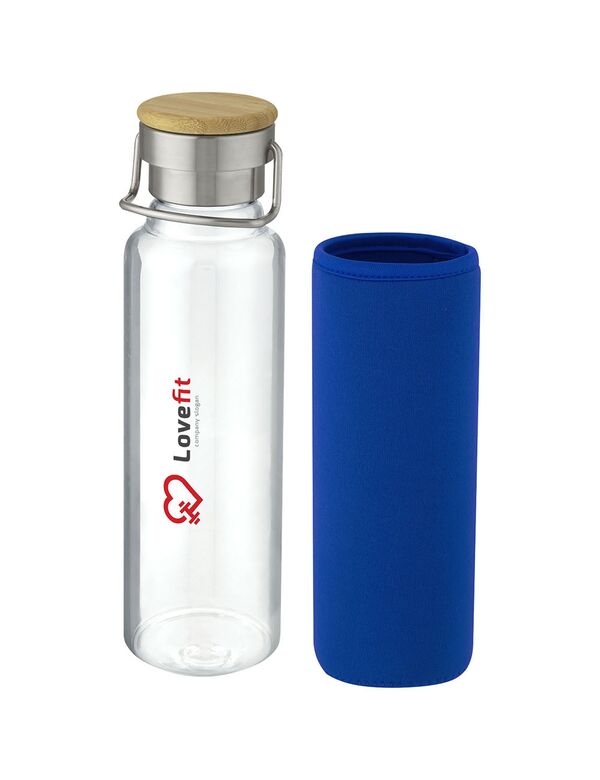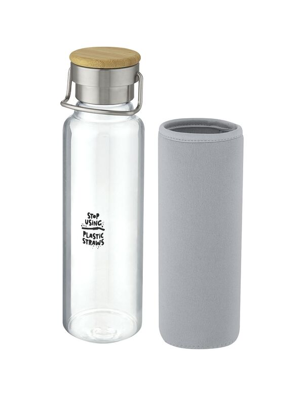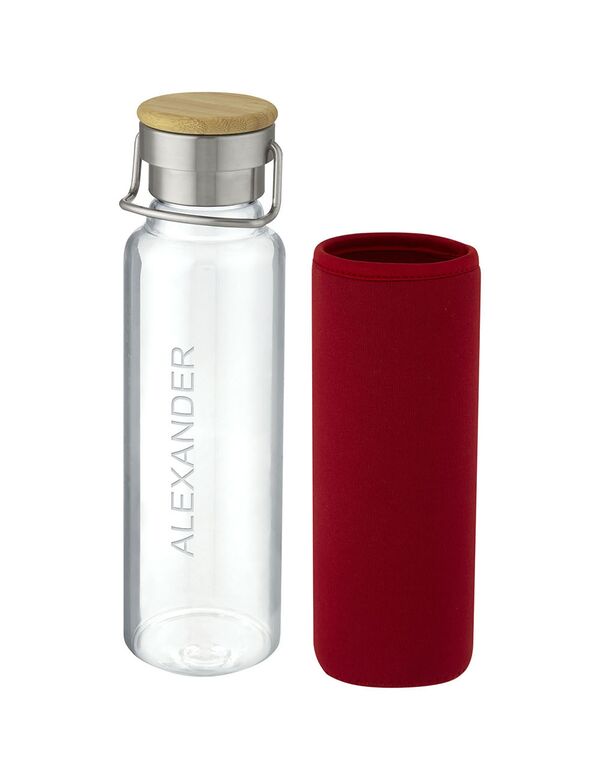Min. antal: 25Enkeltvægget borsilikatglasflaske med beskyttelseshylster i neopren.