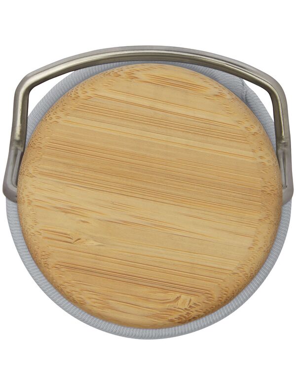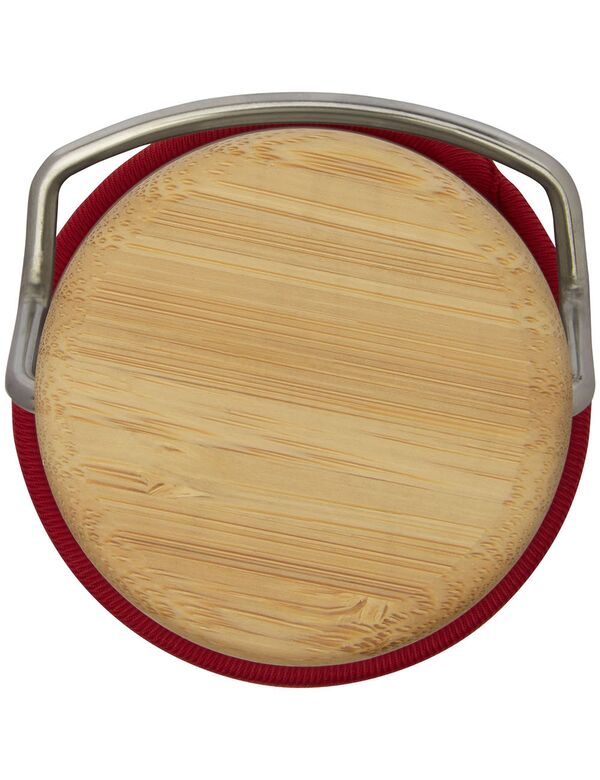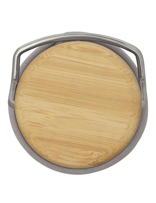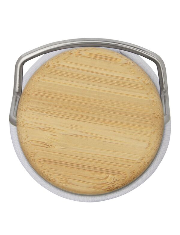Låget har et skruelåg med bambustop, samt et håndtag, der gør det let at bære.
