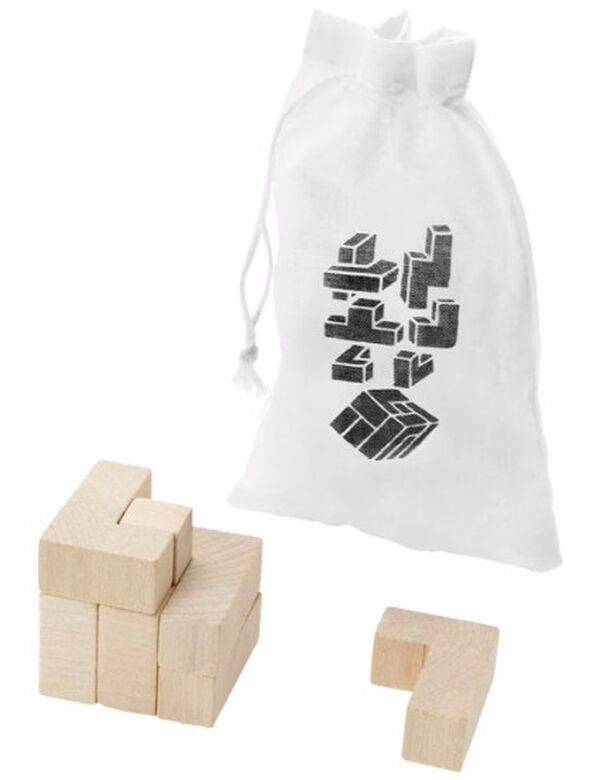 Min. antal: 100Kvadratisk puslespil i træ. Inkl. bomuldspose.