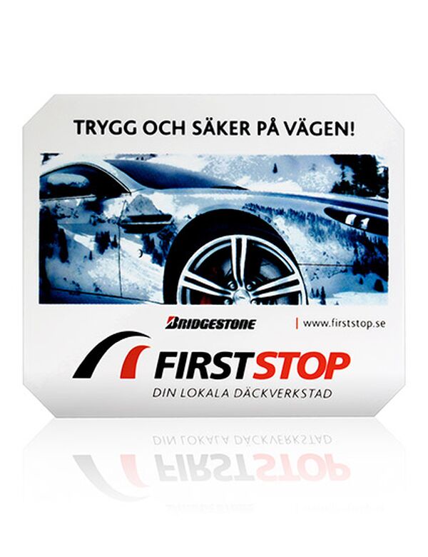 Min. antal: 250Hvid isskraber med fototryk på én side i robust polystyrenplast med affasede hjørner.