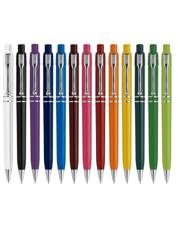 Min. antal: 500Populær Raja Chrome kuglepen i farvet hård plast med metal spids og clips. Kuglepennen er en af de mest solgt i Danmark.