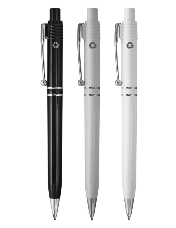 Ydermaterialet på kuglepennen er fremstillet i 100% genanvendt ABS plast.