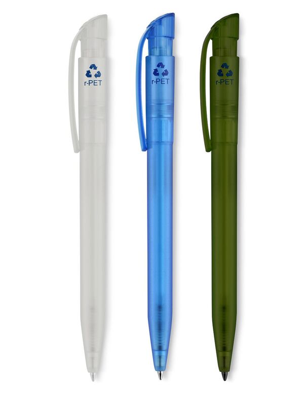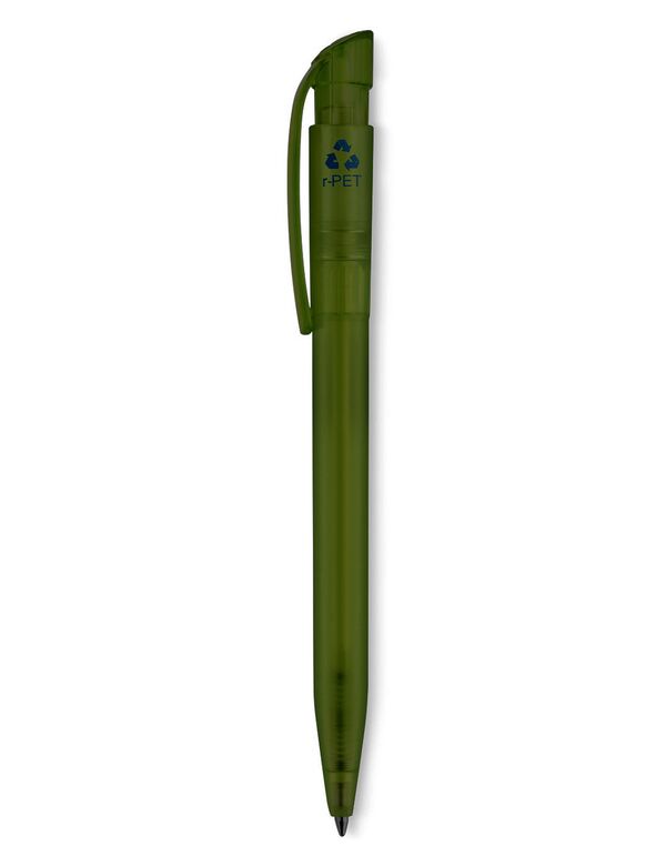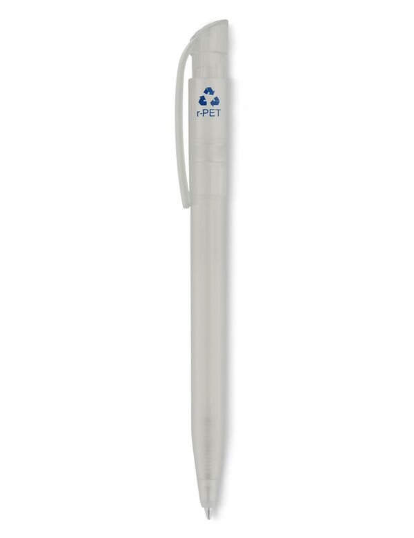 Min. antal: 500Transparent kuglepen med mat udseende, fremstillet i genanvendt plast.
