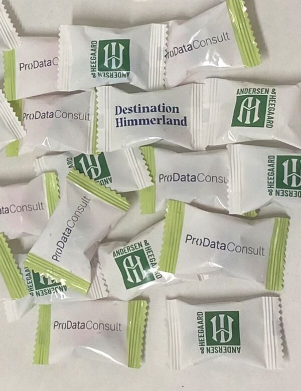 Min. antal: 10Bolcher i smart indpakning med logo, der giver ekstra stor profileringsplads.