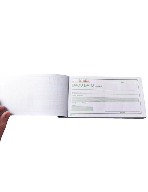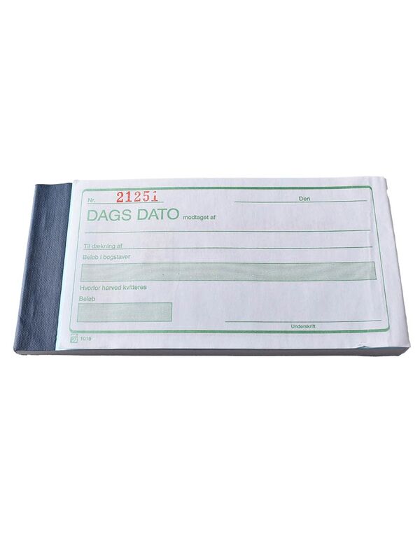 Dags dato blok 1016 med grøn tryk og carbon til kopi.