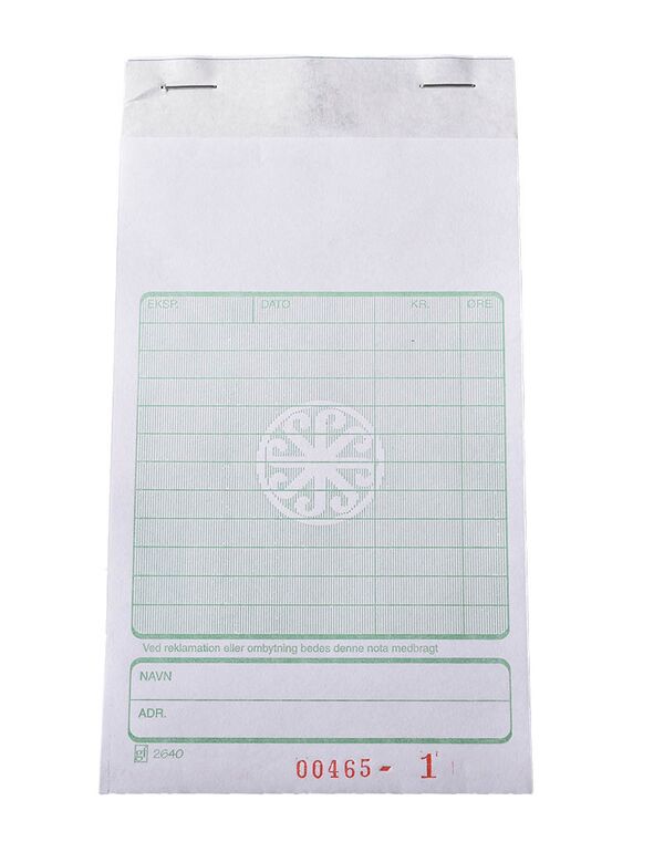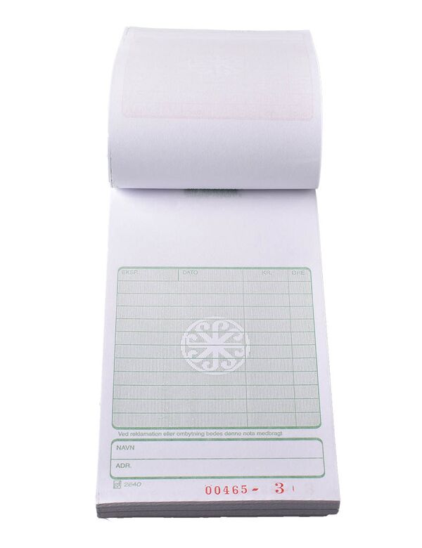 Kasseblok 2640 med grøn tryk og carbon til kopi.