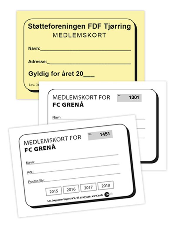 Vi fremstiller medlemskort i papir med gennemslag (SELVKOPIERENDE), samt fortløbende nummer.