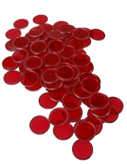 Magnetiske bankobrikker. Køb Poser á 100 stk. i 6 farvevarianter; rød, lilla, pink, grøn, blå, orange
