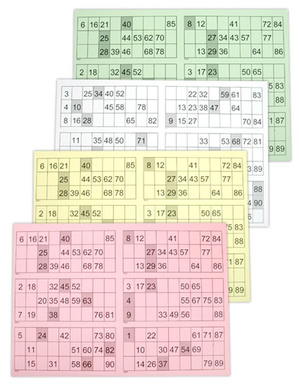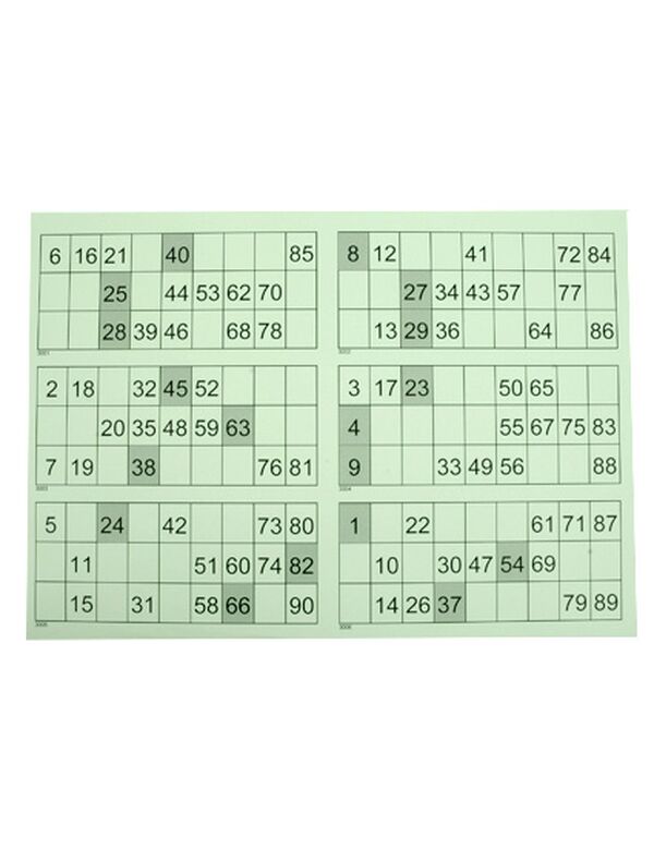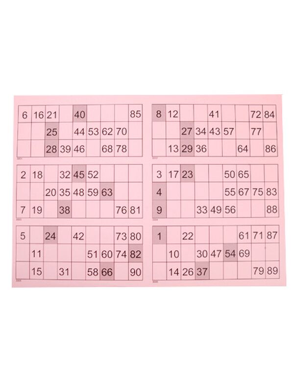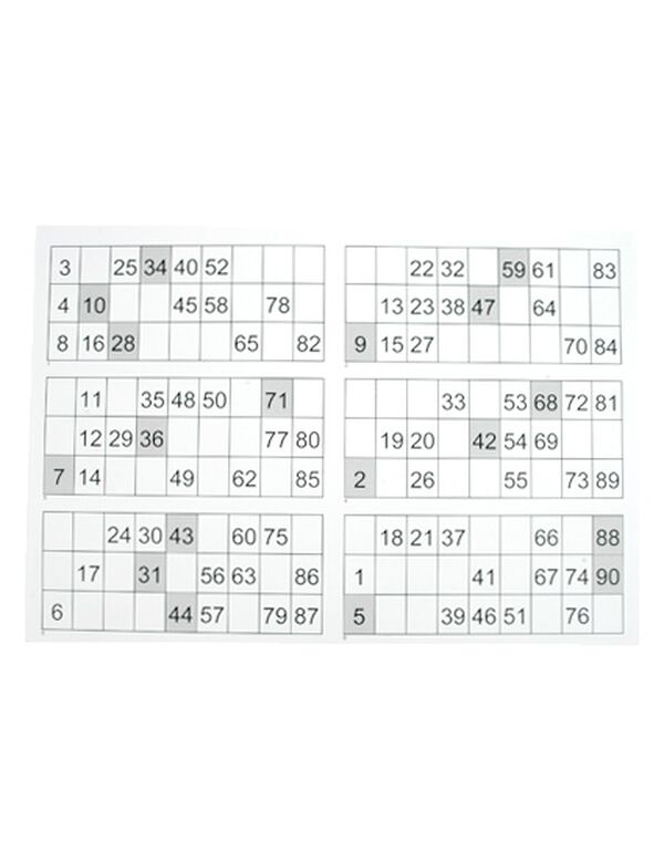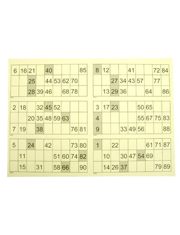 Et ark indeholder numrene 1-90.