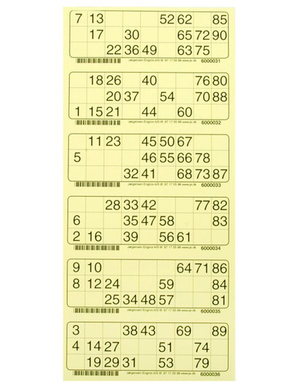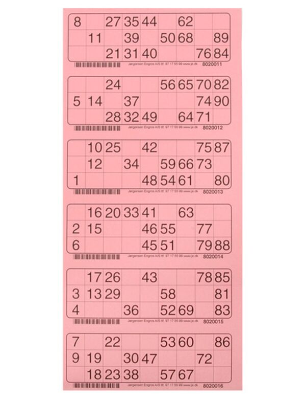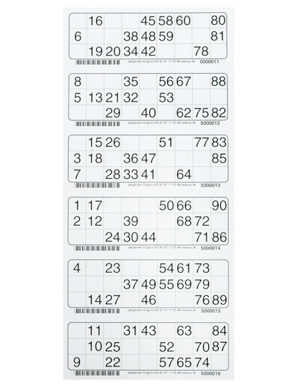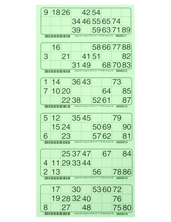 BEMÆRK: Alle plader er påtrykt kontrolnummer, som kan kontrolleres med JE-BINGO.