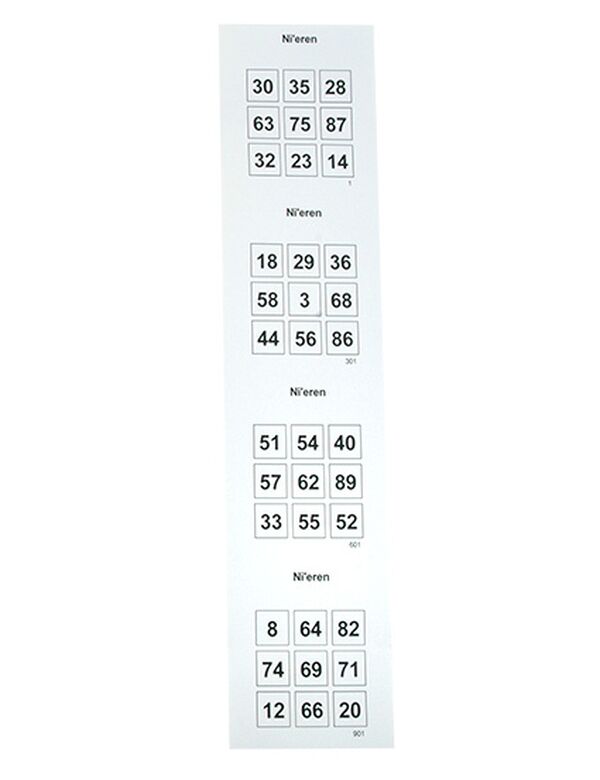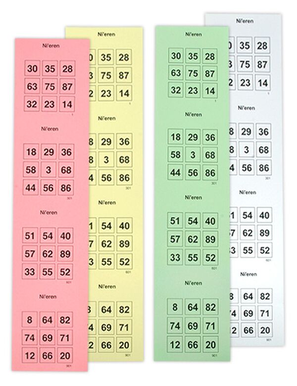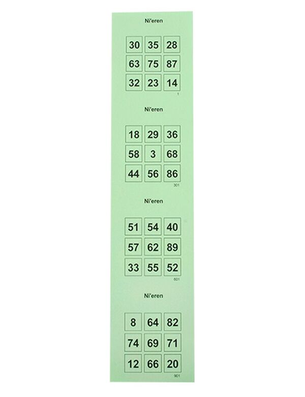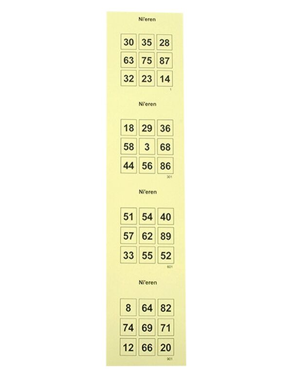 Antal lodder: 1200 lodder i stænger á 4 plader med perforering imellem. (Kan også leveres som løse lodder)