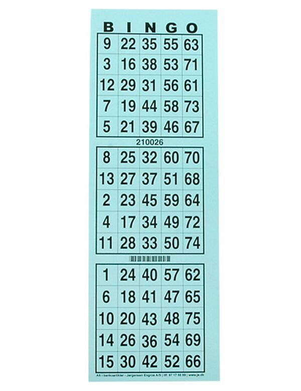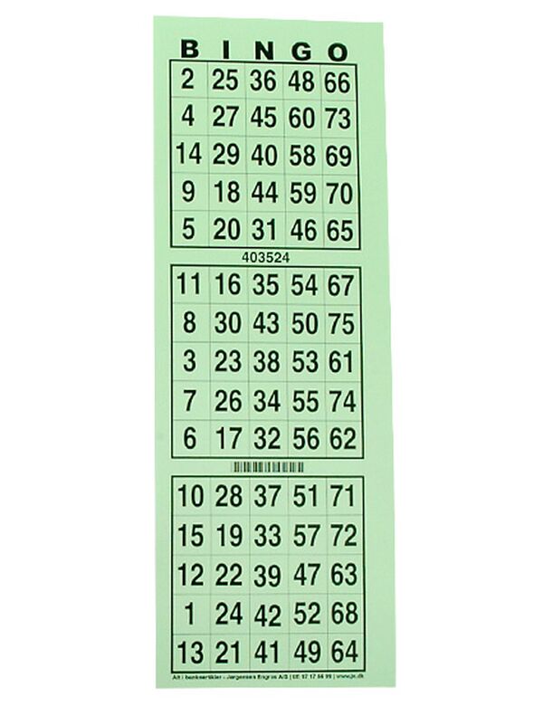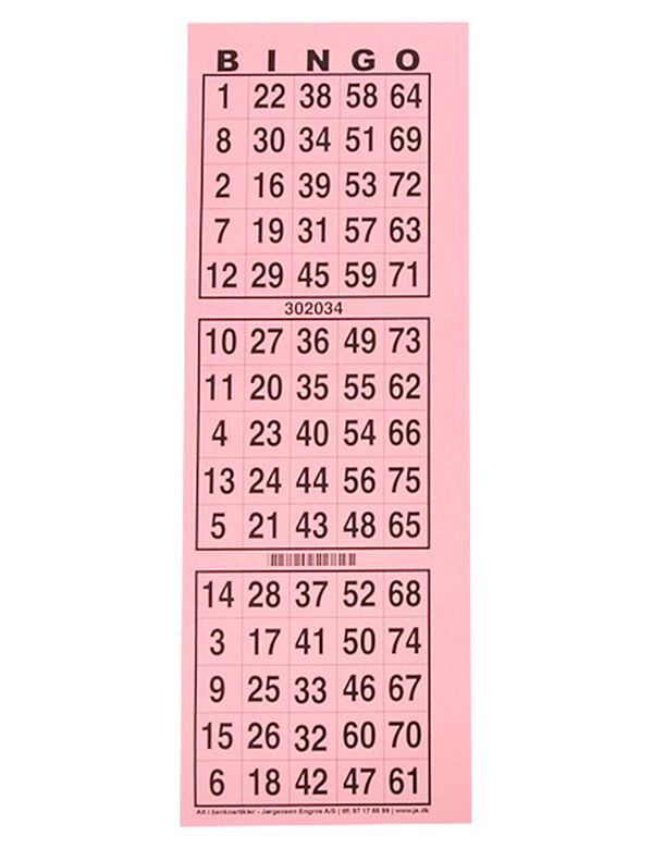 Min. antal: 1Velegnet til ekstra puljespil, samt til dagbingo, svenskbingo, hollandbingo m.m.