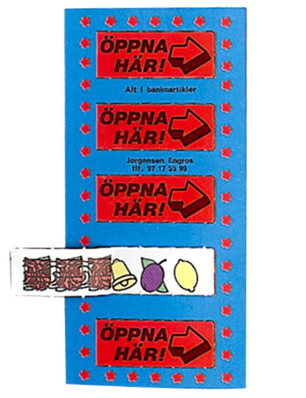Fungerer som en eenarmet tyveknægt. Åbn de 5 låger og se om der er 3 ens tegn, så er der gevinst.