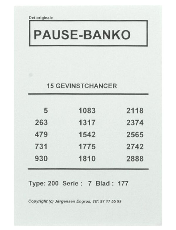 Min. antal: 1Blok med 15 numre på hvert blad.