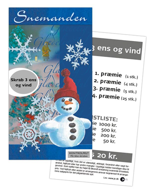 Min. antal: 1Snemanden (standard juleskrab) er et sjovt, fortrykt julespil, som kan sælges i lukkede forsamlinger op til jul og i hele december måned.