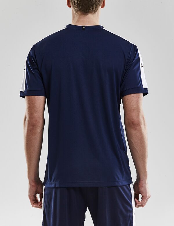 Min. antal: 1Trænings T-shirt eller spillerjersey i elastisk, funktionelt materiale med ekstremt god fugttransport for maksimal ydeevne. Meshpaneler under armene giver effektiv regulering af kropstemperaturen, mens høj elasticitet og ergonomisk design giver en skøn pasform og optimal bevægelsesfrihed. Dobbeltsyet krave i kontrastfarve samt kontrast på skulder/ærme.